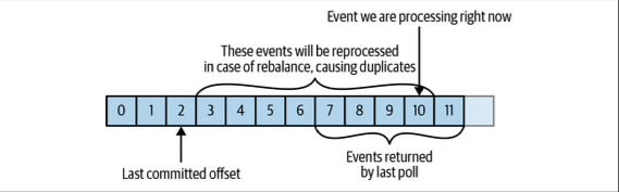 리밸런싱의 문제가 발생하면, 각 consumer는 이전과 다른 파티션을 할당받게 될 수 있다. 이에 따라 메세지를 중복처리하거나 유실되는 경우가 있다. 특히, consumer 를 구성할 때, enable.auto.commit=true 로 두면 아래와 같은 경우 발생가능성이 있음.