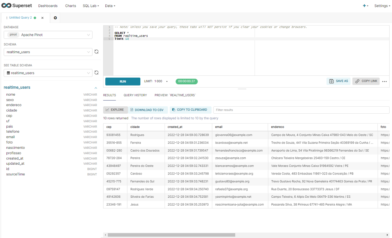 Realtime data streaming with Apache Kafka, Apache Pinot, Apache Druid and Apache Superset