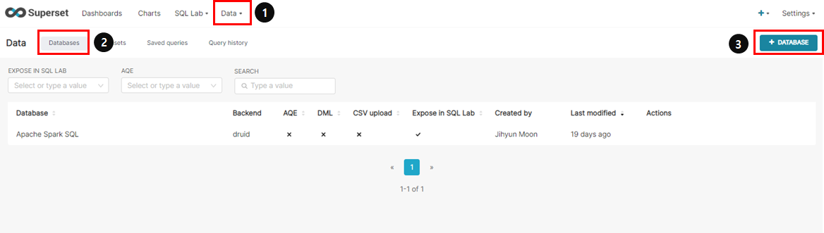 SQL lab에서 아래와같이 쿼리로 데이터 조회가 가능하다.